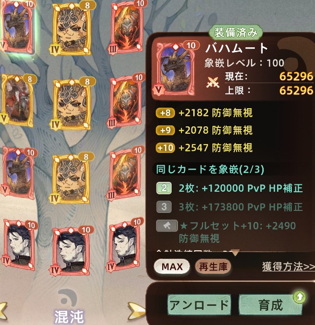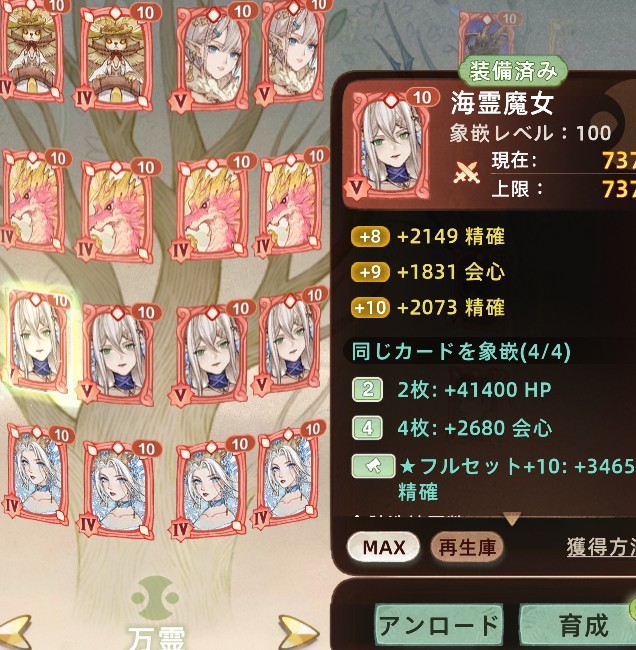 万霊:全て精確と会心が上がるカードを刺しましょう。それ以外は不要です