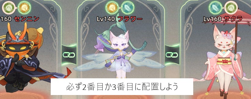 猫霊のサクラやパミナはチェーン効果でスキルを発動すると与ダメージが30%以上向上します