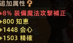 2.属性の「知恵/筋力/器用」等の基本属性、会心、精確、攻撃力アップの4つを最大にする。残ったらHPに降る
