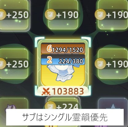 サブの花御は、まずはシングル霊韻を使用して一点集中しましょう