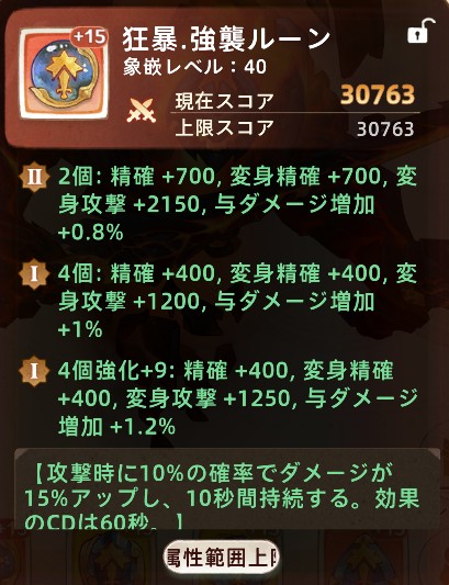 幻果のルーンを凶暴セットで4つ揃えてメイン幻果にセットしましょう。出来るならば12個揃えて3つのメイン幻果全てにセットしましょう。